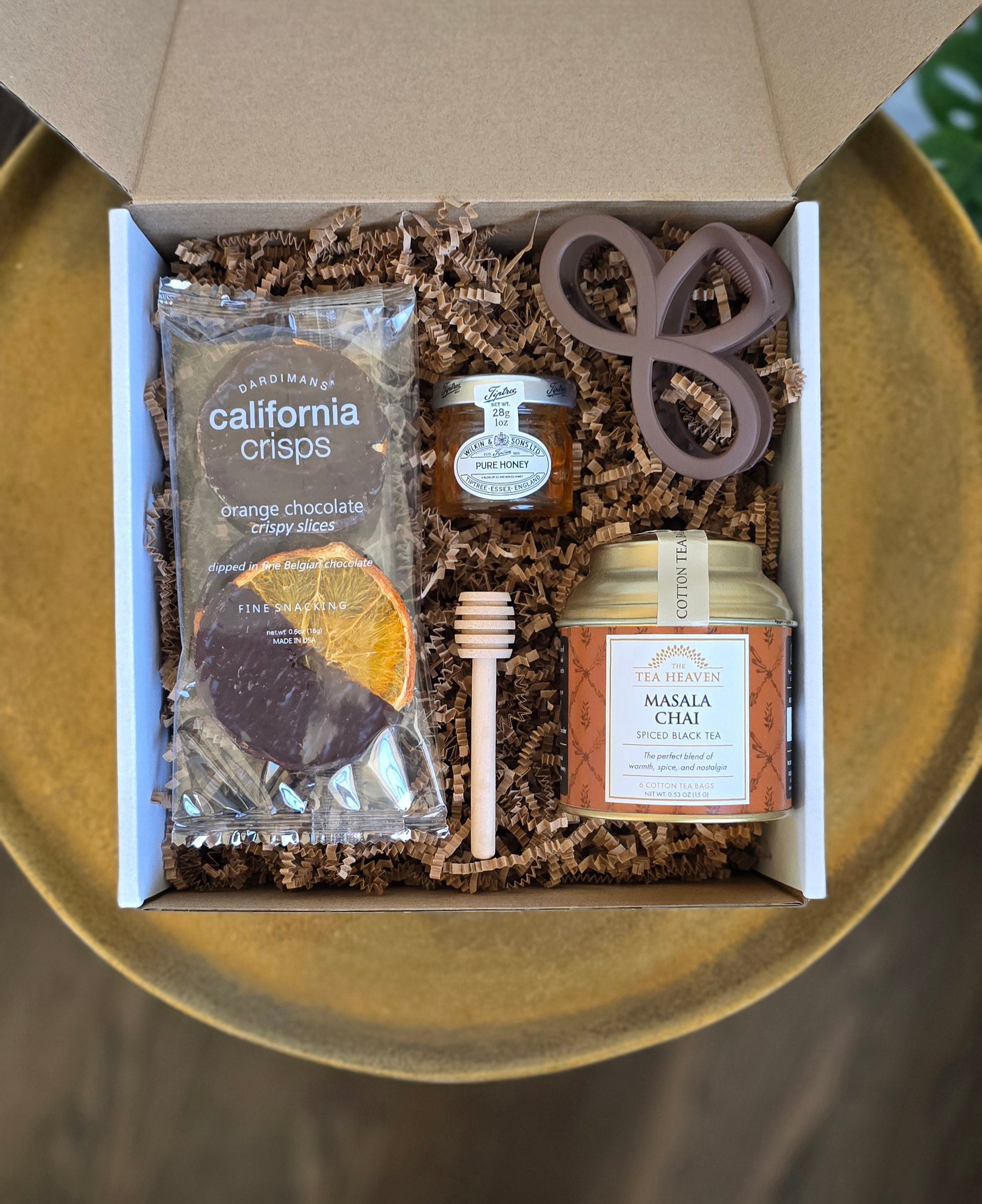 • Pure Honey (1 oz jar) with wooden dipper – A touch of golden sweetness for your chai.