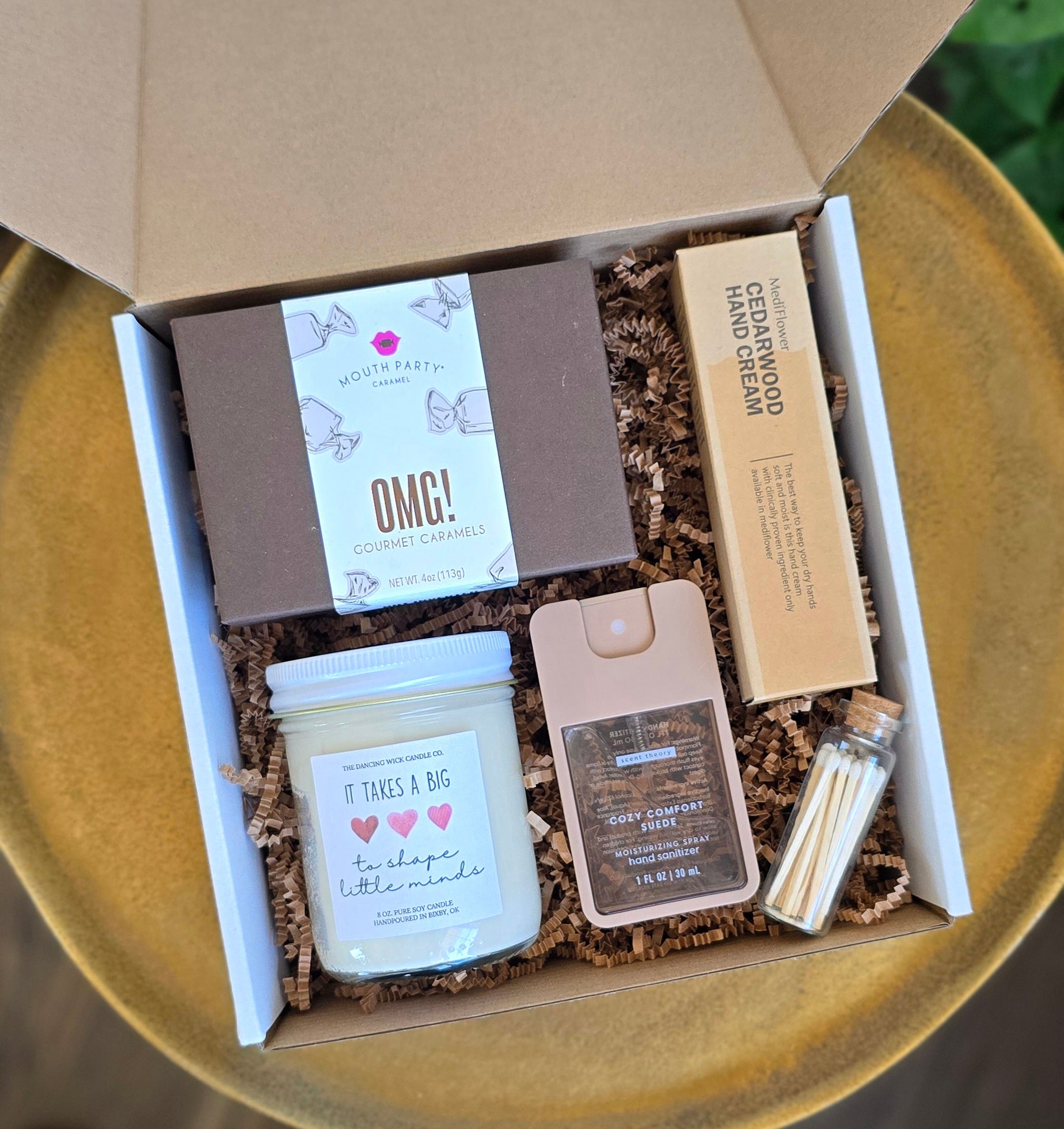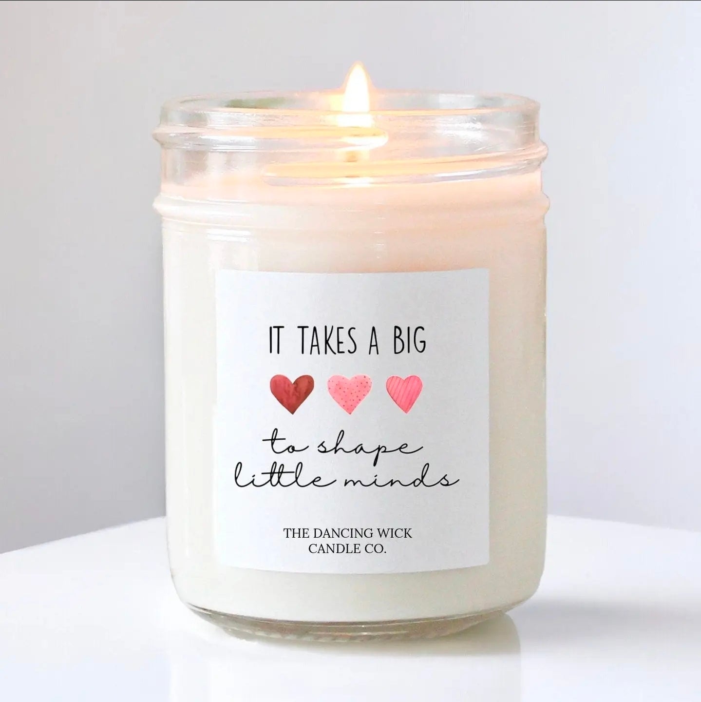• “It Takes a Big Heart To Shape Little Minds” soy candle with glass jar of matches